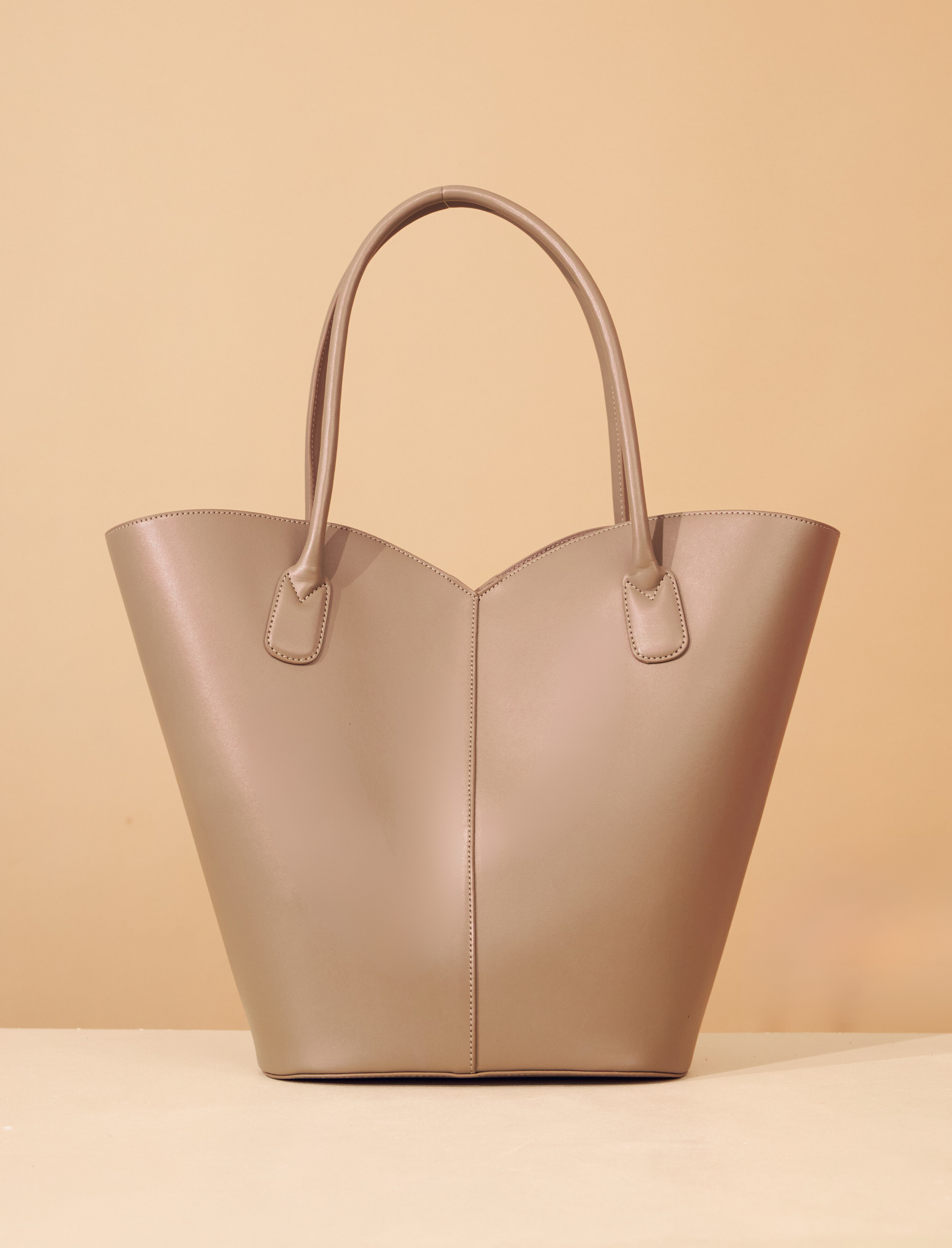 "The Pebble Grande" redefines urban chic with its sleek design and sophisticated taupe hue. Crafted from durable apple leather, this tote bag blends style with practicality, making it a perfect accessory for the city-goer. The interior includes a small zip pocket, making it easy to organize your essentials.